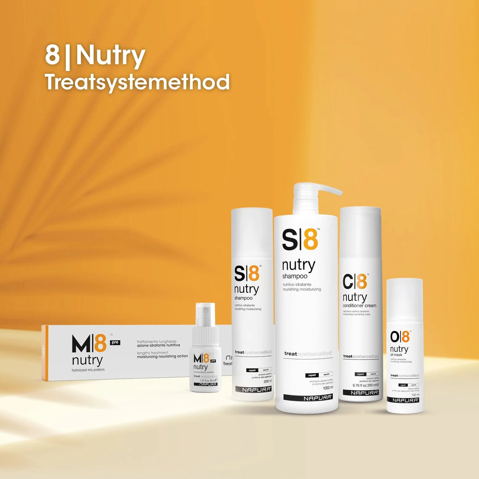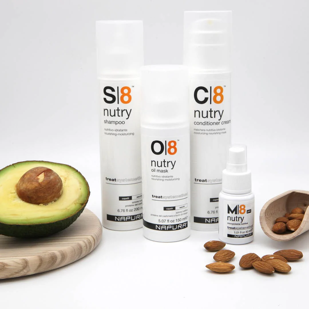 The enhancing effects of M8 Nutry Pre are instant, giving hair its original radiance and long-lasting beauty. The action is completed by protecting the cuticle, which becomes stronger and smoother, making hair especially shiny, light and easy to comb.