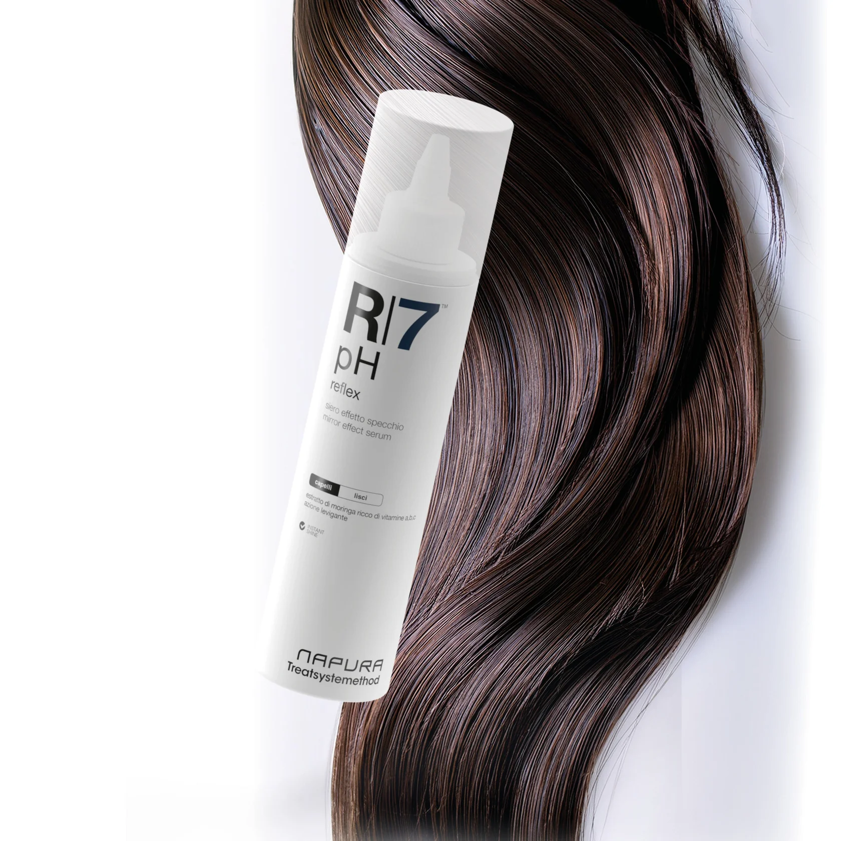 Discover the transformative power of the R7 PH Reflex treatment, the innovative treatment that gives the hair an irresistible gloss -on -effect shine from the first application. Its fluid formula acts deeply, helping to smooth and illuminate the hair structure and to compact the cuticle, creating an instantaneous lamination effect, for a smooth, disciplined and healthier appearance.